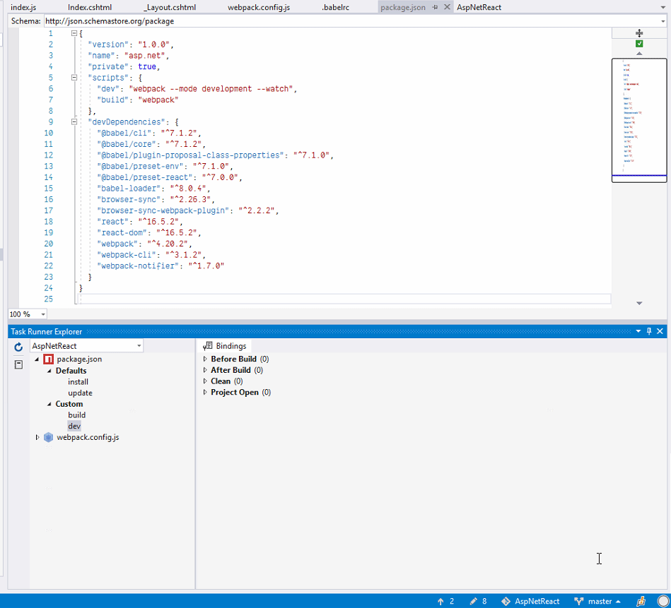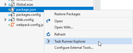 This is an optional step but to make our lives easier, let's install a Visual Studio extension, NPM Task Runner for running NPM scripts from Visual Studio.