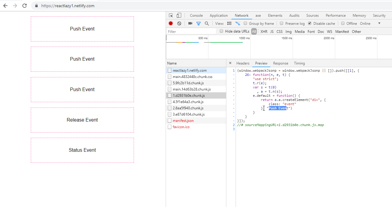 *Event components are the same as in the previous post and the difference is the index.js, which exports lazily loaded components to enable event name matching by key in App.render().