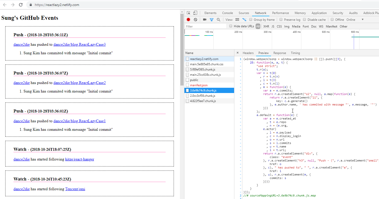 You can follow along in CodeSandbox & check the deployed site for coding splitting in devtools.