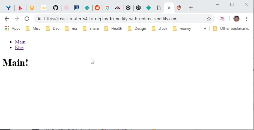And the error occurring on Netlify when you go to https://<netlify domain>/else directly.