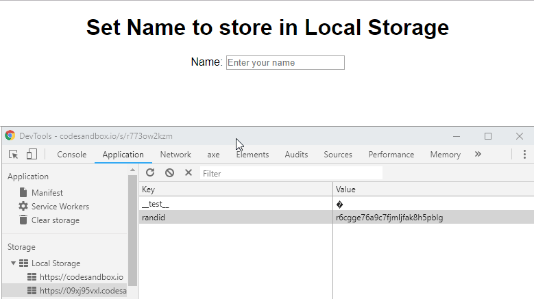 The demo shows that state is saved directly in local storage.