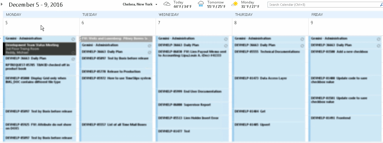 The project manager was very impressed with what he was seeing and I am able to do my job without him interrupting me every day or report to him since he is able to see the progress anywhere on his phone on Outlook Calendar (this was shared for the project manager to see).