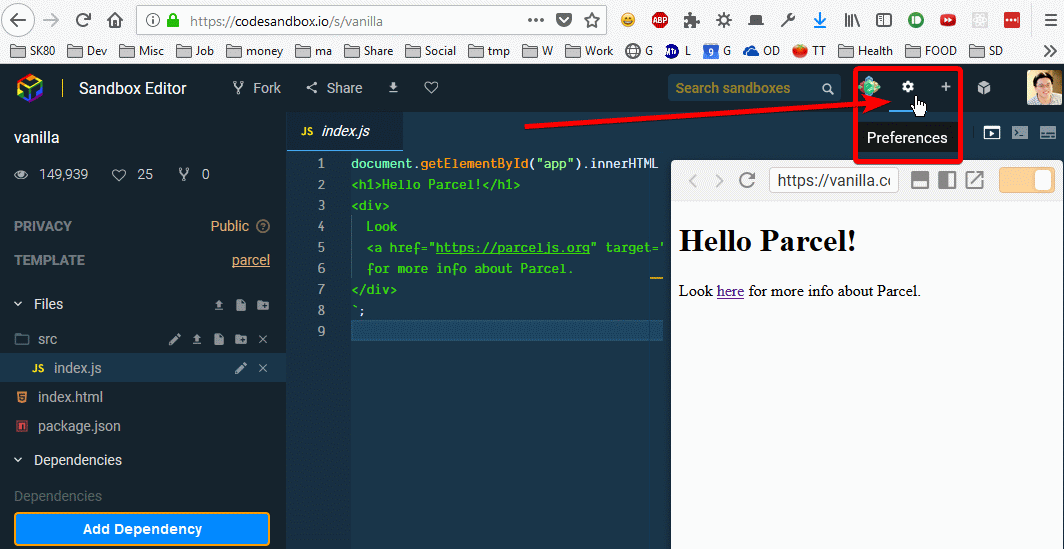 🍀 2. Open CodeSandBox Preference