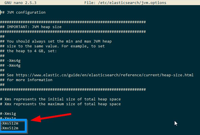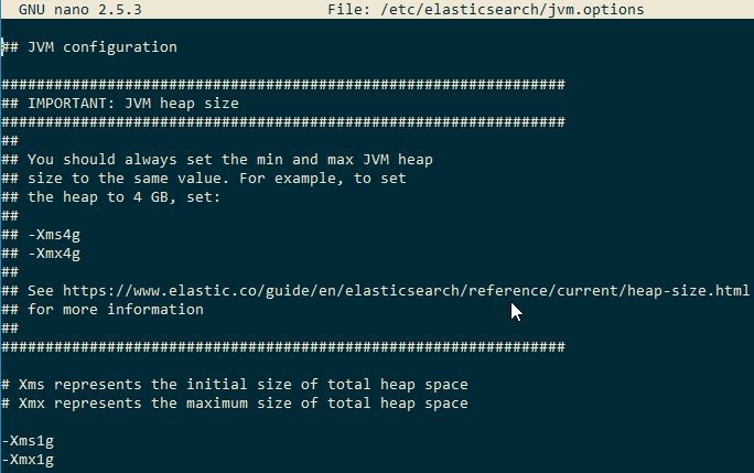 Open /etc/elasticsearch/jvm.option using an editor of your choice (I promise that I will learn either vi or emacs... 😞).