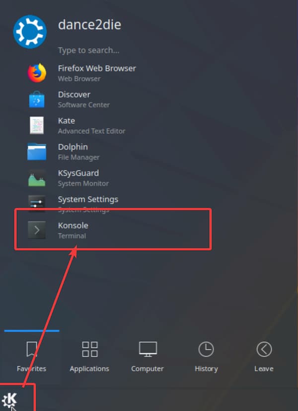 Lastly, log into Kubuntu and start a console.