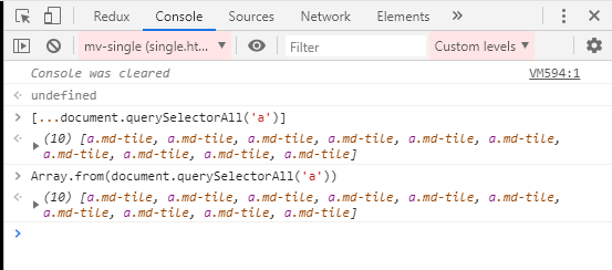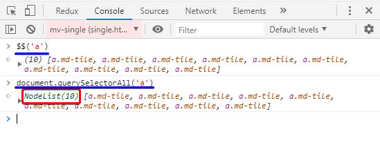 https://developers.google.com/web/tools/chrome-devtools/console/utilities#queryselectorall
