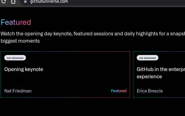 GitHub Universe has a list of "boxes" with gradient backgrounds.