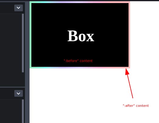1.box::before {2 content: "";3 position: absolute;4 ...;5}6