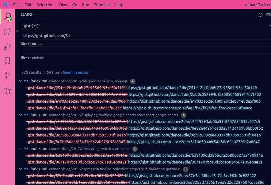 There were over 300+ gists to process and manual replace seemed ridiculous.